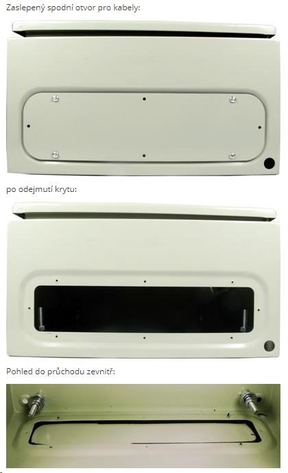 - v dolní části rozvaděče je umístěn průchod pro kabeláž o velikosti 303 x 113 mm s odnímatelným krytem