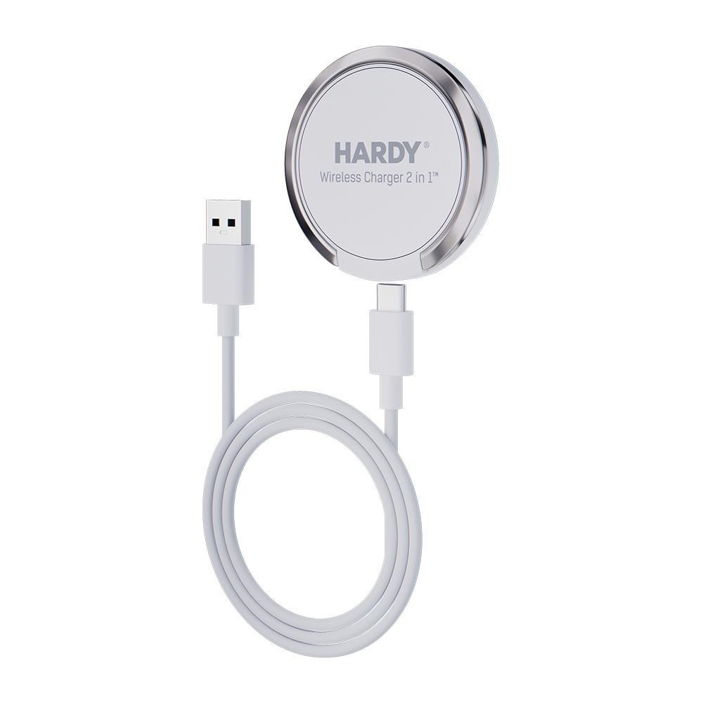 - Značka HARDY® zavazuje, a proto je bezdrátová nabíječka 2 v 1™ založena výhradně na prémiových materiálech a součástech, které jsou robustní a bezpečné. Použití ABS plastu a hliníku nám umožnilo spojit robustnost a spolehlivost s minimalistickým, elegantním a lehkým tvarem. Bezdrátová nabíječka HARDY® 2 v 1™ je pokročilý produkt navržený pro náročné uživatele zařízení MagSafe.