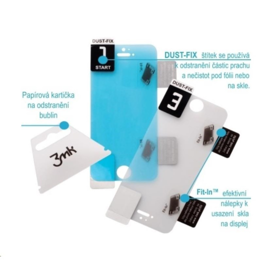 - Sada obsahuje: FlexibleGlass, kartičku na rozetření bublin, polohovací samolepky Fit-In™ a samolepky Dust-Fix™, čistící a suchý hadřík