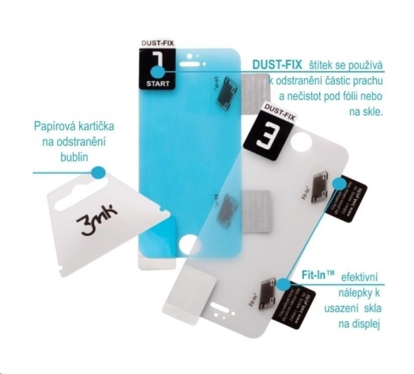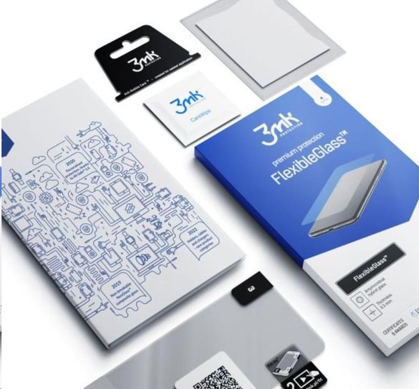 - Sada obsahuje: FlexibleGlass, kartičku na rozetření bublin, polohovací samolepky Fit-In™ a samolepky Dust-Fix™, čistící a suchý hadřík