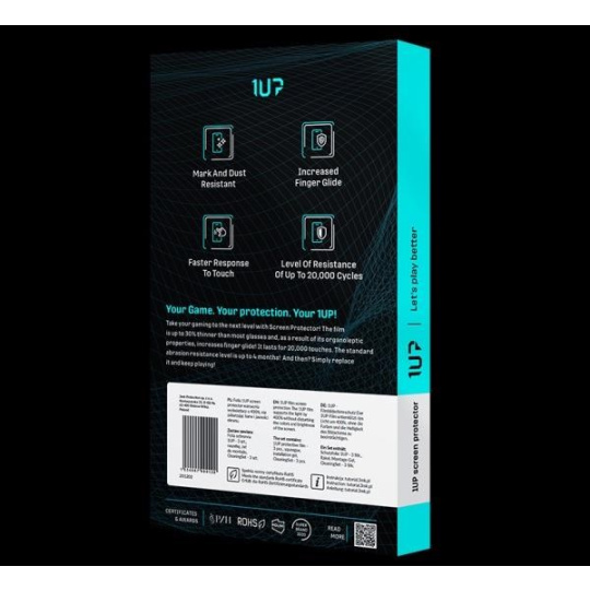 Bezpečnost a ještě něco navíc. Značka 1UP je vytvořena profesionály pro hráče. Spojením nejlepší technologie od 3mk s novými řešeními jsme vytvořili produkt, který zvyšuje rychlost, přesnost a zvyšuje zábavu při hraní – bez ohledu na to, zda bojujete, objevujete džungli nebo vyhráváte šampionáty. Dokáže jednoduše chránit – před poškrábáním, před nečistotami, před poškozením. Může vám také poskytnout prostor k růstu, může vám zvýšit nadšení ze hry, může vás přimět, abyste si mysleli, že je to ta nejlepší ochranná folie, kterou potřebujete!