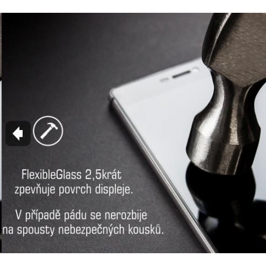 Posílení displeje o 250 % dělá rozdíl. Displej mobilu s naším sklem FlexibleGlass už nepraskne při pádu na tvrdý podklad. Hybridní sklo absorbuje rázovou energii a efektivně chrání displej proti rozbití, je totiž vybaveno anti-crash strukturou. Proto můžete s FlexibleGlass používat svůj mobil bez stresu i při lezení po skalách.