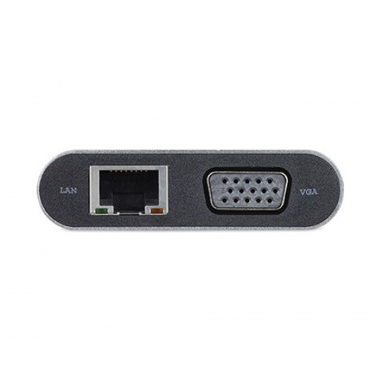 Kompabilita - Windows® 10, Mac OS®, Chromebook Rozhraní - USB Type-C Váha a rozměry - 115 (W) x 62 (D) x 16,5 (H) mm, 98 g Rychlost - až do 5Gbps Type C - 20V/3V Display HDMI - 3840x2160 @30Hz VGA - 1920x1200 @60Hz VGA + HDMI podporují 1080P Ethernet - 10/100/1000 Mbps USB 3.0 3x Audio - 3,5mm Stereo Audio + Mikrofon Čtečka karet SD a TF sloty.