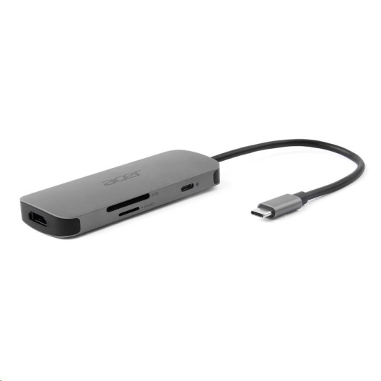 ACER Dokovací stanice 7in1 Type-C dongle, 1x HDMI, 3x USB-A 3.2 Gen1, 1x SD 3.0, 1x microSD, 1x USB-C, silver