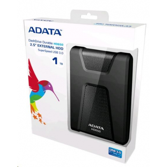 ADATA Externí HDD 1TB USB 3.1 DashDrive Durable HD650, černý (gumový, nárazu odolný)