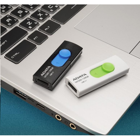 ADATA Flash Disk 128GB UV320, USB 3.1 Dash Drive, bílá/zelená