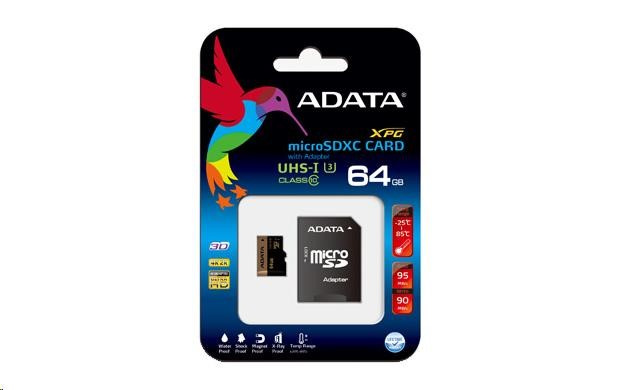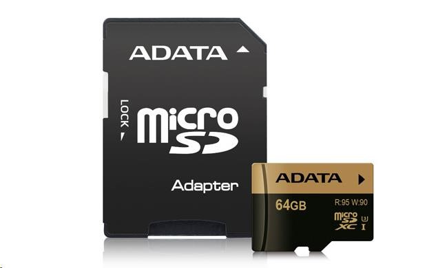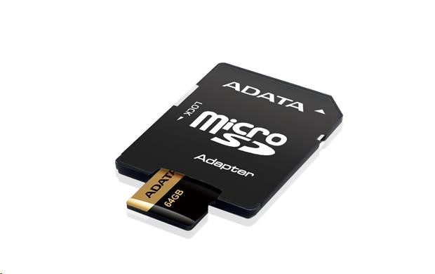 ADATA MicroSDXC karta 64GB Premier Pro UHS-I V30S (R:100/W:80 MB/s) + SD adaptér