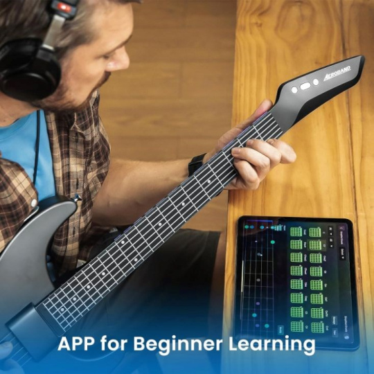 S 3,5mm audio výstupem pro sluchátka je AeroBand kytara kompatibilní jak s náhlavními, tak se špuntovými sluchátky a díky funkci Bluetooth i s bezdrátovými sluchátky. Díky tichému provedení můžete cvičit a hrát, aniž byste rušili ostatní – ať už jste doma, na cestách nebo venku. Seznamte své přátele s novým přístupem ke hře na kytaru díky AeroBand Guitar. Je to ideální způsob, jak probudit zájem, zejména u těch, kteří se s tradiční kytarou ještě nesetkali.