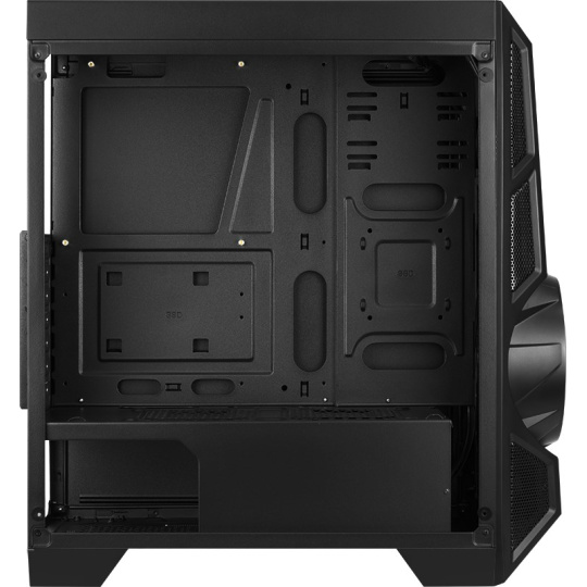 Skříň formátu Middle Tower se stylovým designem a RGB LED na předním panelu. 14 režimů osvětlení: 7 RGB a 7 statických barevných režimů. LED přepínač umožňuje nastavit světelné efekty tak, aby vyhovovaly vašemu stylu a náladě.