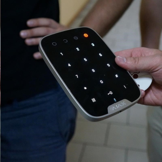 Ajax KeyPad je bezdrátová dotyková klávesnice umožňující jednoduché ovládání zabezpečovacího systému zadáním číselného hesla či stisknutím tlačítka. V krizové situaci lze rovněž diskrétně spustit tichý poplach.