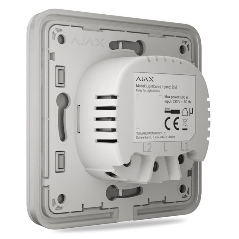 Panel je vždy nutné kombinovat s Ajax relé a Ajax rámečkem dle Vašeho výběru - dohromady vytváří inteligentní nástěnný vypínač - LightSwitch.