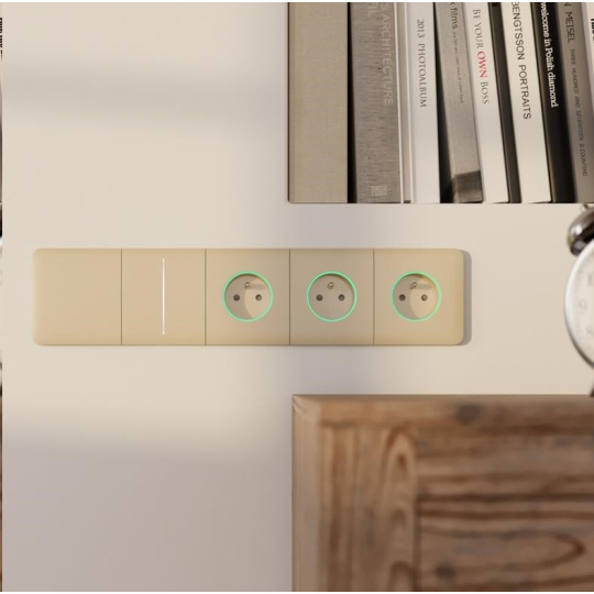 Zásuvky lze používat samostatně nebo je kombinovat s chytrými vypínači LightSwitch a instalovat do rámečku. Přístroje mají stejný design rámečku a barevné odstíny.