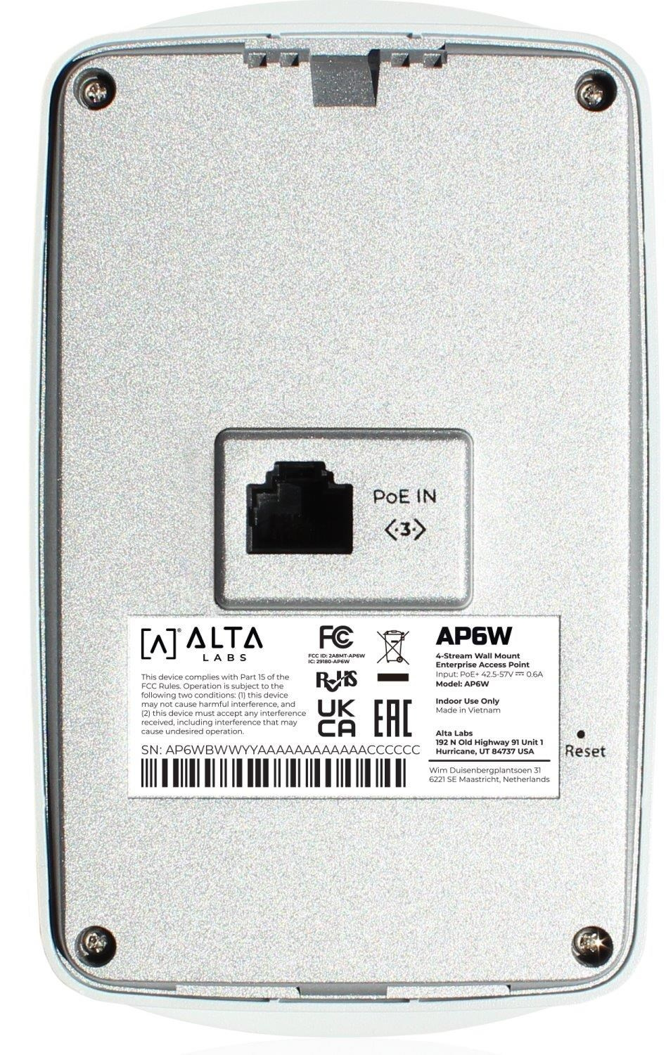 Alta Labs AP6W Wi-Fi 6, Wall mount enterprise Access Point