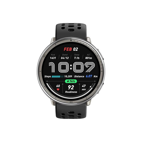 Elegantní kulaté tělo hodinek je vyrobeno z odolné nerezové oceli, takže bez problémů zvládne každodenní nošení i intenzivní trénink. Dominantou je kvalitní AMOLED displej, který díky špičkovému jasu až 2 000 nitů zůstává perfektně čitelný i na přímém slunečním světle. Ať jsi venku nebo uvnitř, obraz je vždy ostrý, jasný a přehledný.