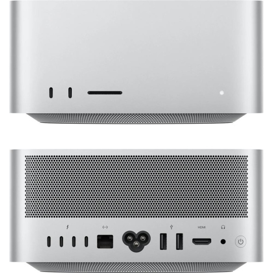 Ve čtvercovém těle Macu Studio s rozměry 19,7 × 19,7 cm se ukrývá chladicí systém, který čipu M4 Max nebo M3 Ultra umožňuje zvládat nejnáročnější úlohy ohromnou rychlostí. I při maximálním zápřahu je Mac Studio naprosto neslyšný, takže tě při práci nikdy neruší.