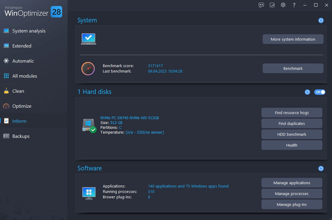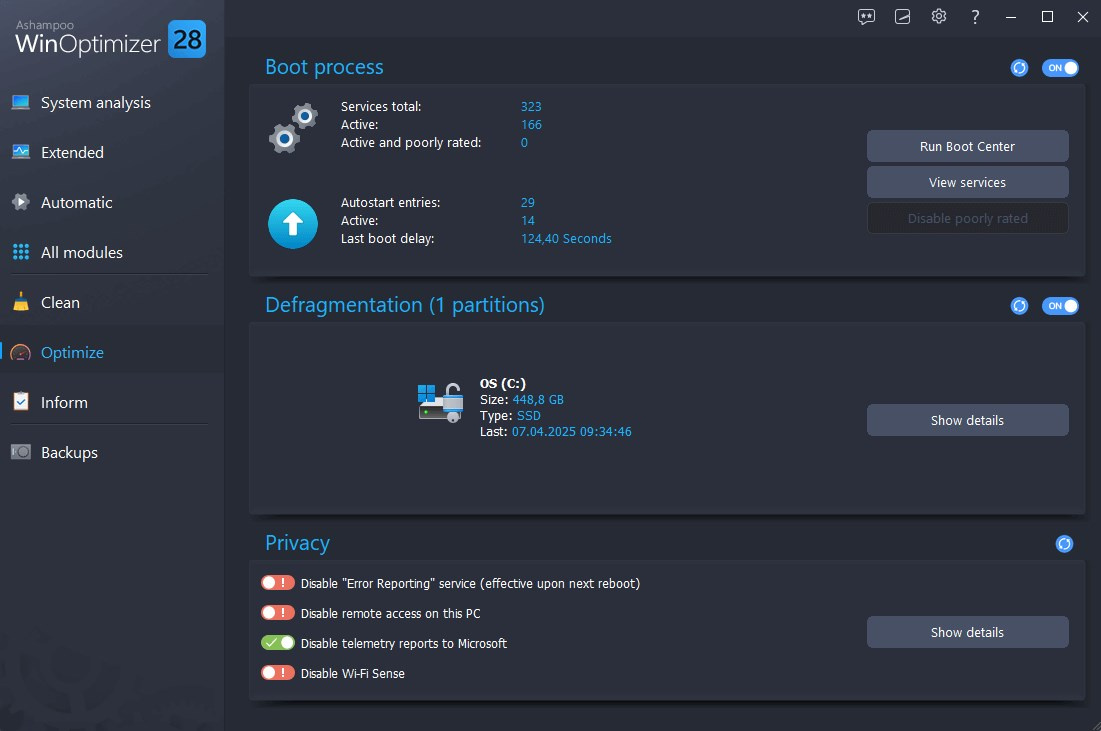 S novým programem Ashampoo WinOptimizer 28 získáte automaticky nejlepší zážitek z práce s Windows. Jeho nová automatizace zrychluje, čistí a ladí vaše aplikace. Nechte svůj počítač plynule přizpůsobit vašim potřebám pomocí prioritizace procesů, automatického čištění dočasných souborů a vlastních konfigurací profilů na základě nového nástroje Profile Booster. Ať už jde o hraní her, práci nebo prohlížení webu, maximalizujte výkon systému nebo šetřete prostředky, volba je na vás. Nový nástroj Crash Analyzer nabízí hluboký pohled na pády systému a jejich příčiny, zatímco čtyři pokročilé čističe zajišťují soukromí a poskytují údržbu systému. Díky vylepšené správě paměti dokáže nyní WinOptimizer využít více prostředků k provádění komplexních analýz téměř okamžitě!