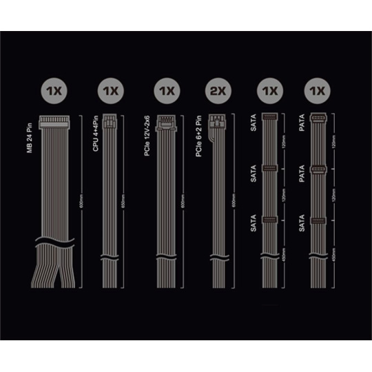 | ATX 20+4pin Konektor | 1x / 1x (600 mm) |