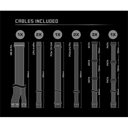 | ATX 20+4pin Konektor | 1x / 1x (600 mm) |