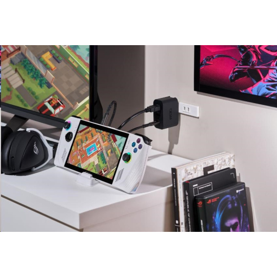UNIVERZÁLNÍ NABÍJEČKA: ROG Gaming Charger Dock je kompaktní a univerzální zařízení, které lze používat s různými zařízeními, včetně ROG Ally, notebooků a mobilních telefonů, které podporují funkcionalitu zobrazení přes USB Type-C.