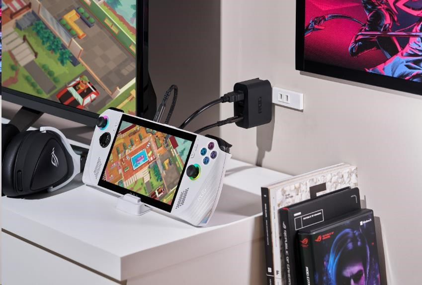 UNIVERZÁLNÍ NABÍJEČKA: ROG Gaming Charger Dock je kompaktní a univerzální zařízení, které lze používat s různými zařízeními, včetně ROG Ally, notebooků a mobilních telefonů, které podporují funkcionalitu zobrazení přes USB Type-C.
