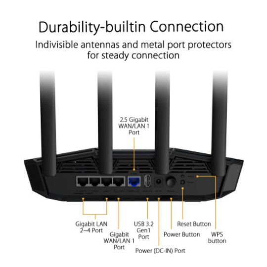 - Podpora ASUS AiMesh – Podpora AiMesh pro vytvoření mesh sítě v celé domácnosti.
