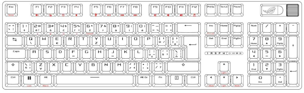 - PBT / ABS s UV povlakem: Odolné zdvojené klávesy ROG PBT nebo klávesy ABS s UV povlakem nabízejí prvotřídní pocit a odolnost proti lesku