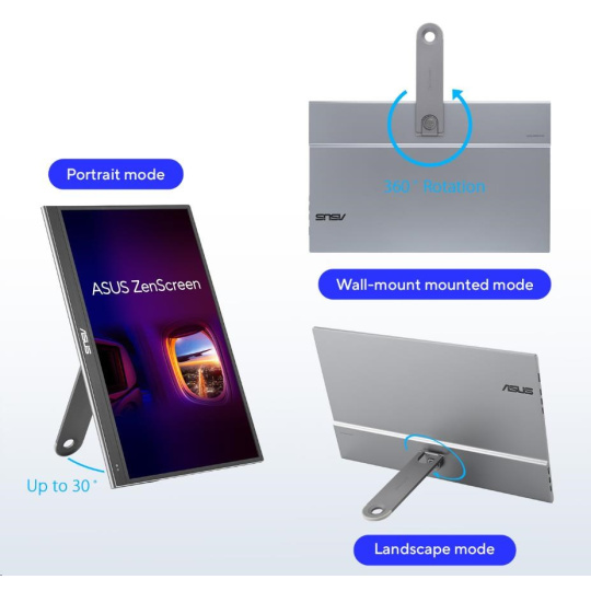 ASUS ZenScreen OLED MQ16AHE portable monitor – 16" (15.6 ") FHD (1920 x 1080), OLED, 100% DCI-P3, 1 ms Response Time, HDR-10, USB Type-C, Mini HDMI , Proximity Sensor, 360° kickstand, Flicker Free, Low Blue Light