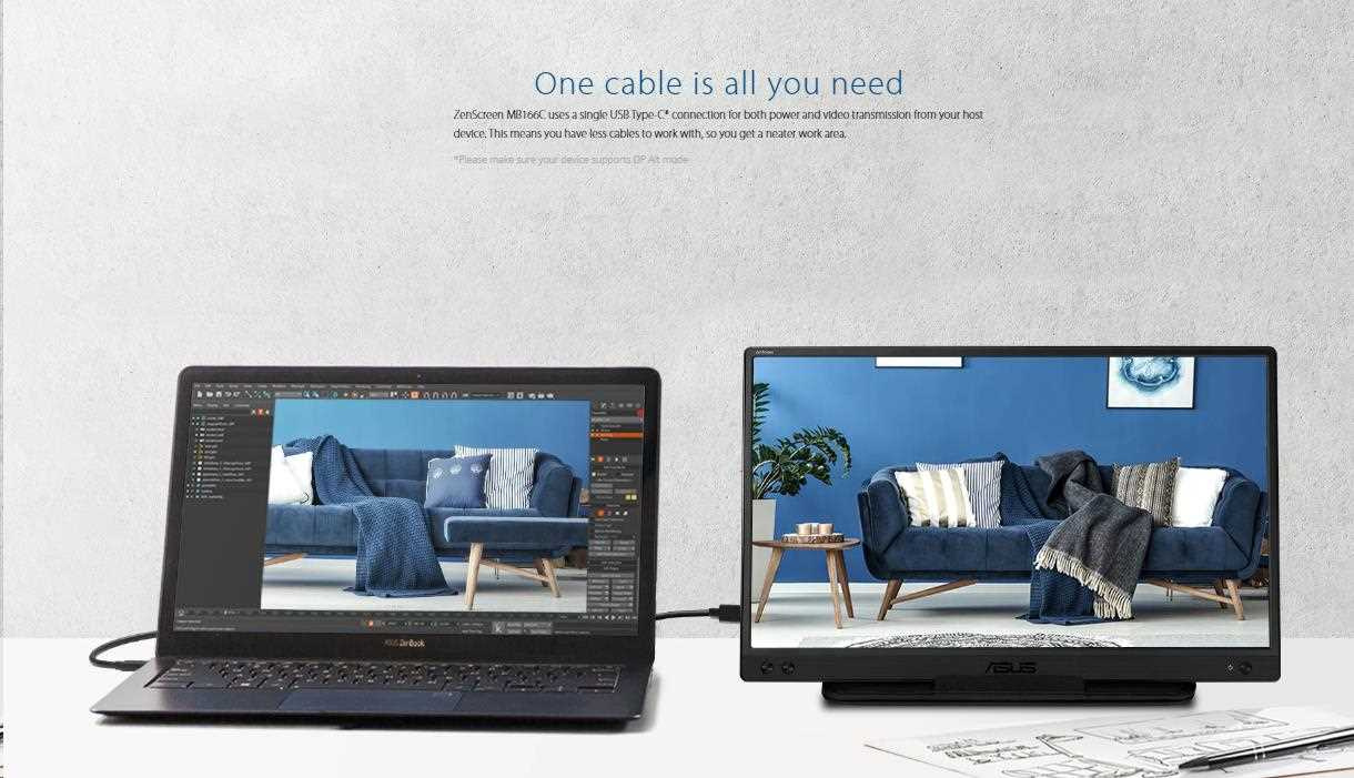 ASUS ZenScreen MB166C Portable USB Monitor- 15.6 inch, Full HD, IPS, USB Type-C, Flicker Free, Blue Light Filter, Anti-glare surface