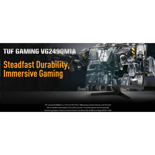 Herní monitor TUF Gaming VG249QM1A - 24 palců (23,8 palců viditelných), Full HD (1920x1080), Fast IPS, přetaktováno na 270 Hz (ze 144 Hz, 240 Hz), Extreme Low Motion Blur, 1 ms (GTG), 99% sRGB, FreeSync Premium, kompatibilní s G-Sync