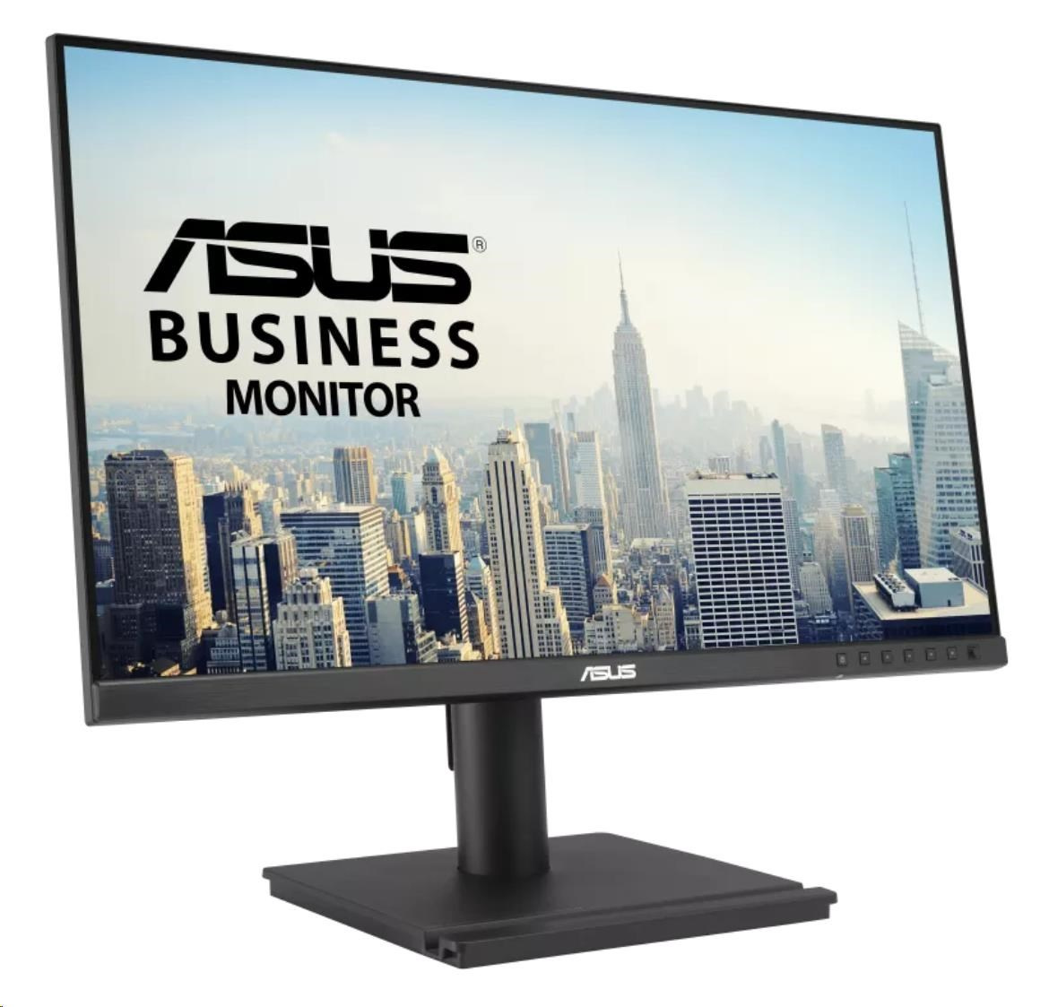 24 palců (23,8 palce zobrazovací plochy), IPS, 120 Hz, bezrámečkový, dokovací port USB-C, RJ45, stereo reproduktory, výškově nastavitelná, ergonomický design, HDMI, řetězové propojení DisplayPort, ASUS Power Sync, Eye Care, redukce modrého světla, Flicker Free, montáž na stěnu, udržitelnost