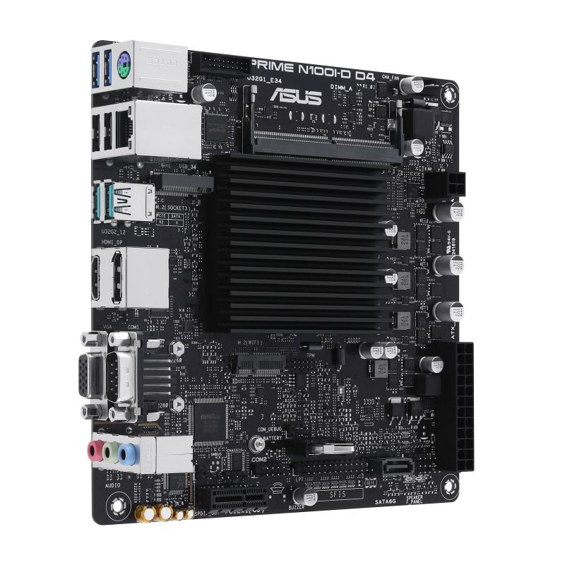 Low-power, fan-less motherboard for Intel® Processor N100, with PCIe 3.0, DisplayPort/HDMI™/VGA, USB 3.2 Gen 2 port, M.2 WIFI slot, SATA 6 Gbps, LPT header, COM Port, COM Header, Q-LED Core