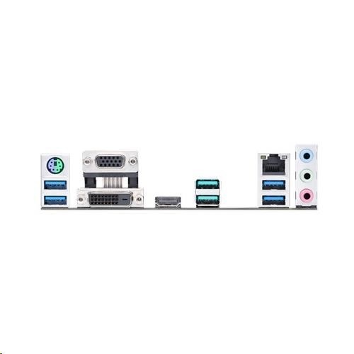 | Back I/O Ports | 1 x PS/2 keyboard/mouse combo port(s) 1 x DVI-D 1 x D-Sub 1 x HDMI 1 x LAN (RJ45) port(s) 2 x USB 3.2 Gen 2 (teal blue) (2 x Type-A) 4 x USB 3.2 Gen 1 (blue) Type-A 3 x Audio jack(s) |