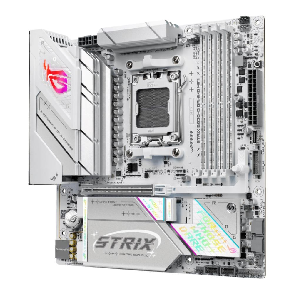 Unleash next-gen performance with the ROG Strix B850-G Gaming WiFi. Built with a sleek white PCB and featuring support for AMD Ryzen™ 9000 Series processors and cutting-edge DDR5 memory, this motherboard is equipped for top-tier gaming. PCIe® 5.0, USB 20Gbps Type-C® and WiFi 7 ensure unmatched speed and performance.