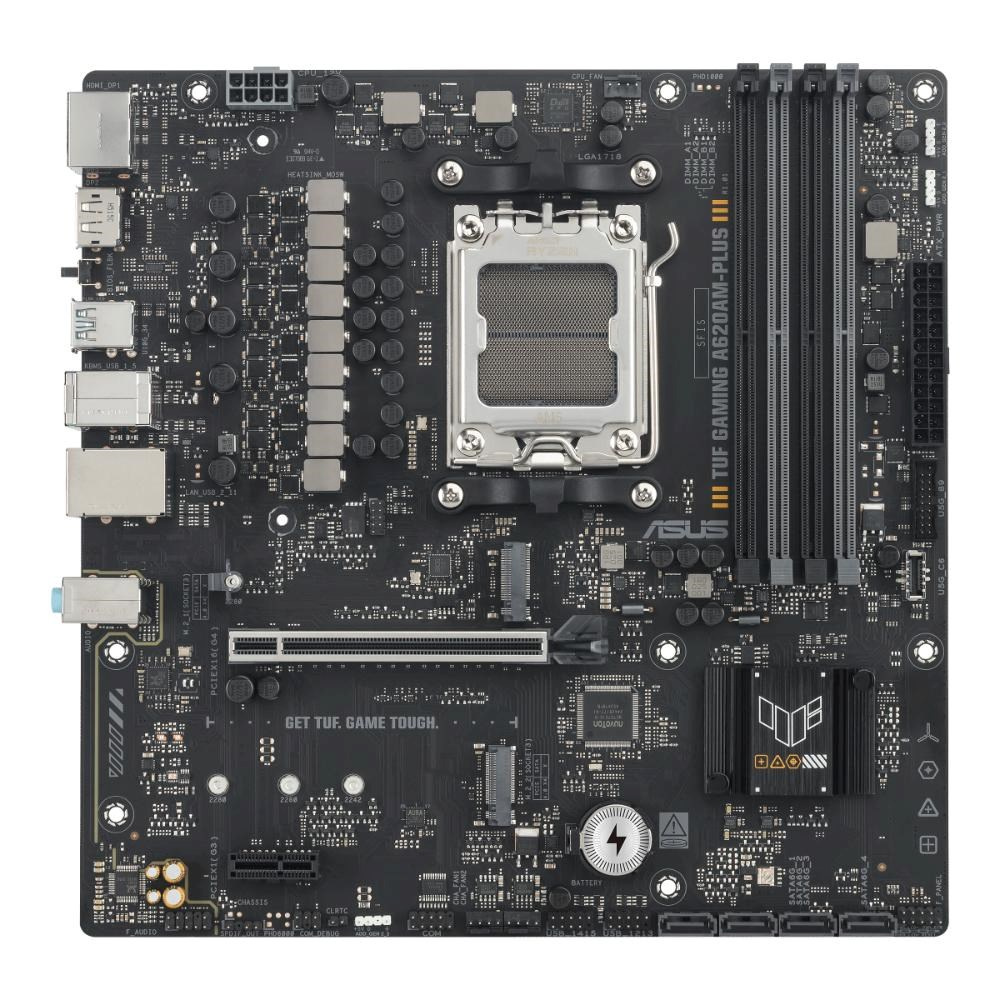 ASUS TUF GAMING A620AM-PLUS takes all the essential elements of the latest AMD Ryzen™ processors and combines them with game-ready features and proven durability. Engineered with military-grade components, an upgraded power solution and a comprehensive cooling system, this motherboard goes beyond expectations with rock-solid and stable performance for marathon gaming. TUF GAMING motherboards also undergo rigorous endurance testing to ensure that they can handle conditions where others may fail. This platform delivers the power and connectivity that advanced AI PC applications demand.
