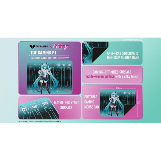 ASUS podložka pod myš TUF GAMING P1 Hatsune Miku Edition, 260x360x2mm, textil