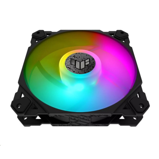 TUF Gaming TF120 ARGB chassis fan delivers high performance and durability in a rainbow of color.