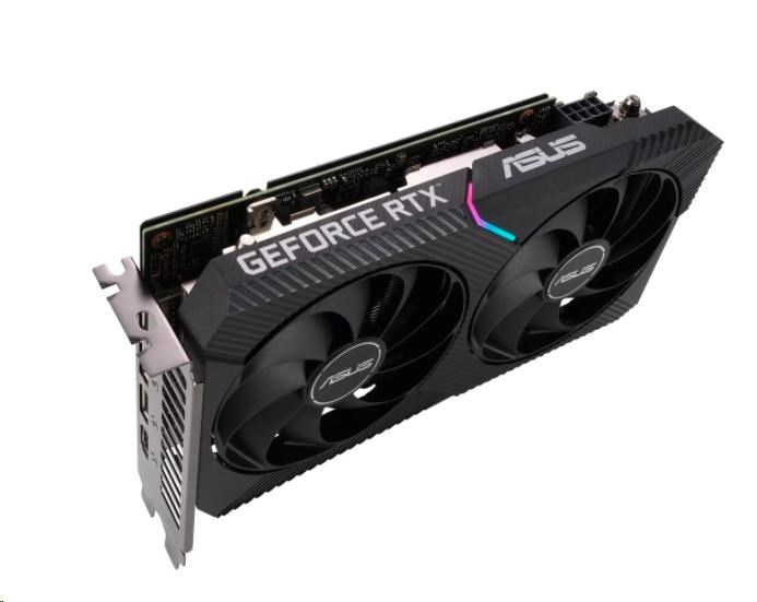 ASUS Dual GeForce RTX 3050 V2 OC Edition 8GB GDDR6 se dvěma výkonnými ventilátory Axial-tech a 2slotovým designem pro širokou kompatibilitu.