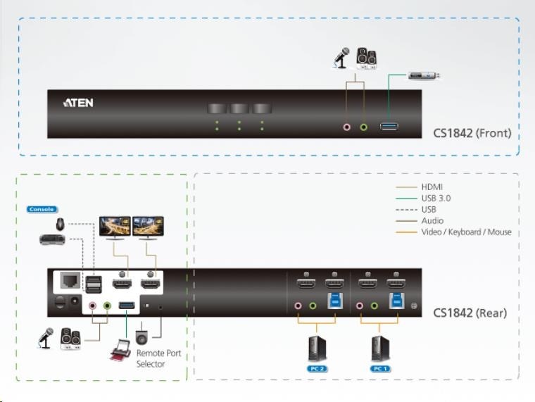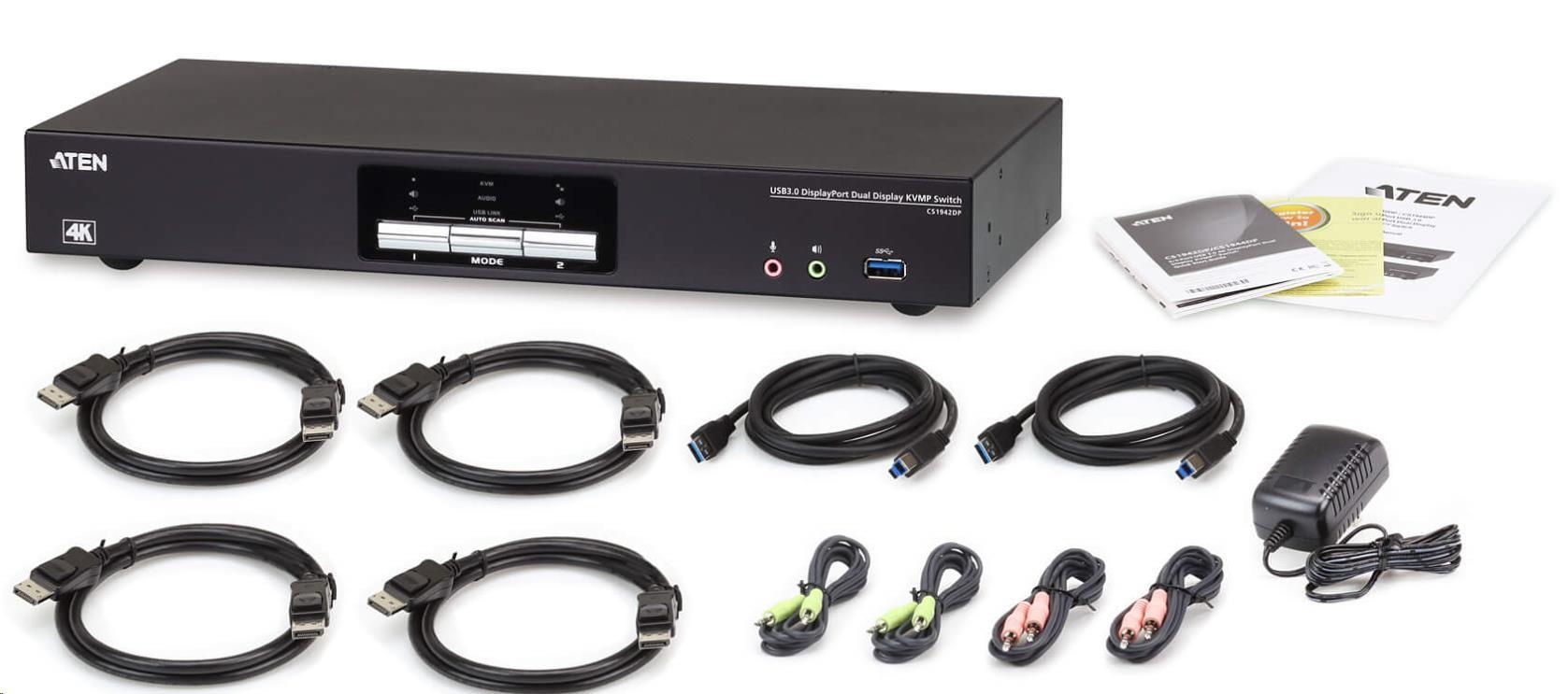 Přepínač KVM ATEN CS1942DP pomáhá organizovat pracovní plochu. Zvláště při správě multimediální pracovní stanice ve velké organizaci nabízí CS1942DP uživatelům okamžitý přístup ke dvěma počítačům,