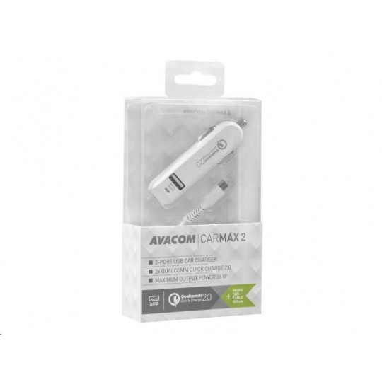 AVACOM CarMAX 2 nabíječka do auta 2x Qualcomm Quick Charge 2.0, bílá barva (micro USB kabel)