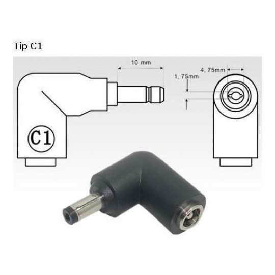 Konektor, kterým lze redukovat konektor C.4 univerzálního síťového adaptéru na konektor C1 (4,8mm x 1,7mm) vhodné pro notebooky Asus, HP, LG, Sony