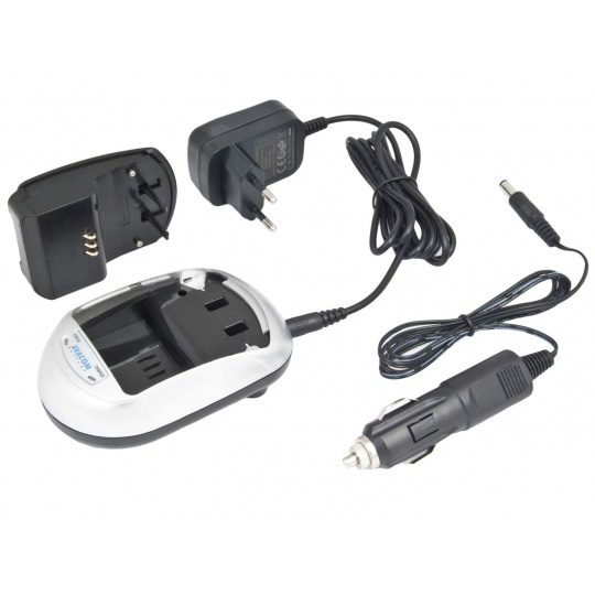 Balení obsahuje: nabíjecí základnu, redukci AVP, síťový adaptér na 100 - 240V, 12V autoadaptér do zapalovače, návod k použití.