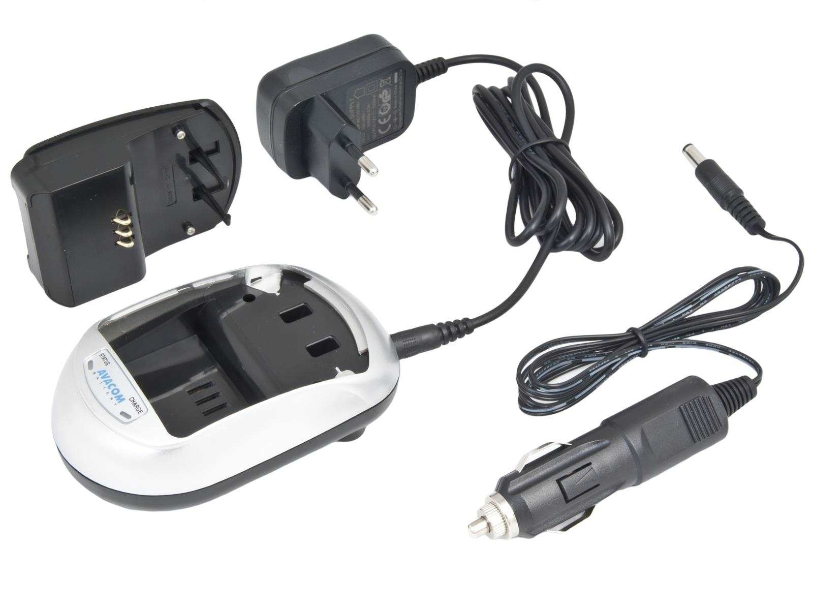 Balení obsahuje: nabíjecí základnu, redukci AVP, síťový adaptér na 100 - 240V, 12V autoadaptér do zapalovače, návod k použití.