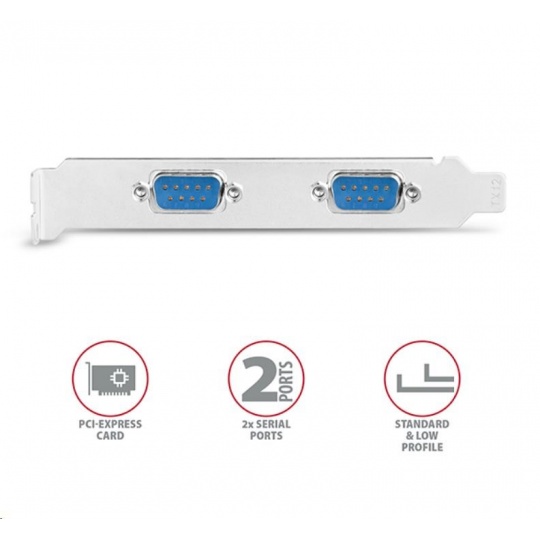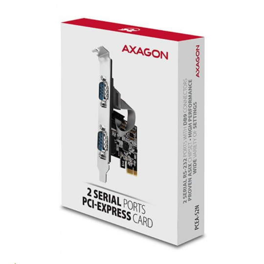 PCI-Express karta AXAGON PCEA-S2N rozšíří stolní počítač o dva sériové RS-232 porty s DB-9 konektory.