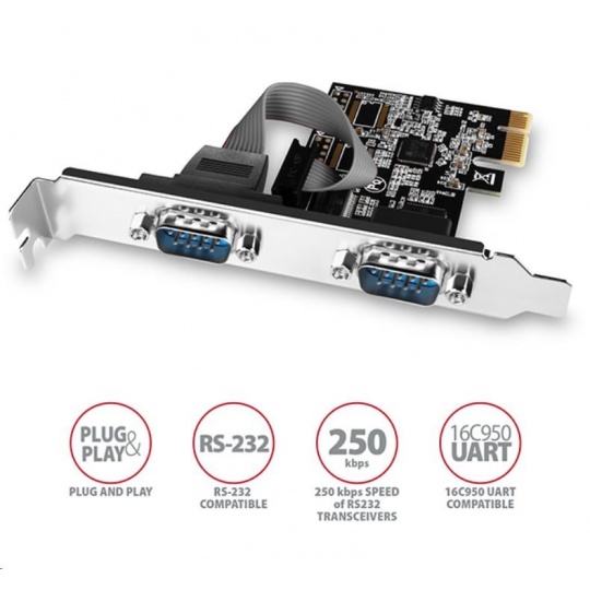 AXAGON PCEA-S2N, PCIe řadič - 2x sériový port (RS232) 250 kbps, vč. LP