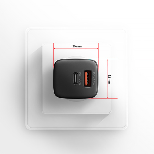 Kompaktní nabíječka do sítě AXAGON ACU-PQ20 umožňuje rychlé nabíjení až dvou mobilních zařízení současně. Díky celkovému výkonu 20W dokáže nabíječka dobíjet telefony, tablety a další mobilní zařízení nejvyšší možnou rychlostí. Adaptér nabízí nejen standardní USB-A konektor, ale také oboustranný USB-C konektor.