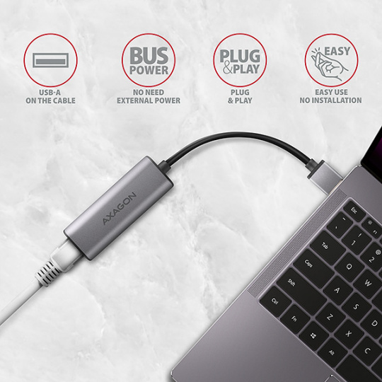 AXAGON ADE-25R USB-A 3.2 Gen 1 - 2.5 Gigabit Ethernet síťová karta, Realtek 8156, auto install, šedá