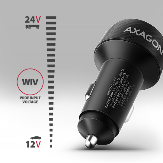 AXAGON PWC-PQ48 nabíječka do auta 48W, USB-A + USB-C, PD3.0/PPS/QC4+/SFC/Apple