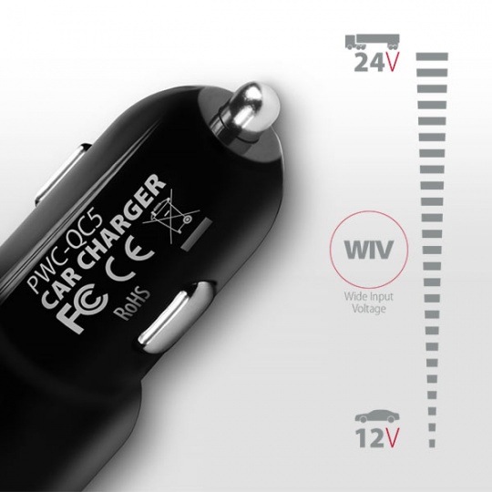 • 1x USB type A port QC: Quick Charge 3.0 - 3.6-6.5V/3A, 6.5-9V/2.1A, 9-12V/1.6A
