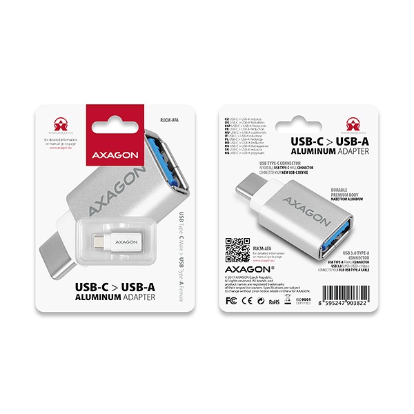 USB-C > USB-A redukce AXAGON RUCM-AFA připojí stávající zařízení s USB Type A konektorem k novému zařízení s moderním USB Type C rozhraním.