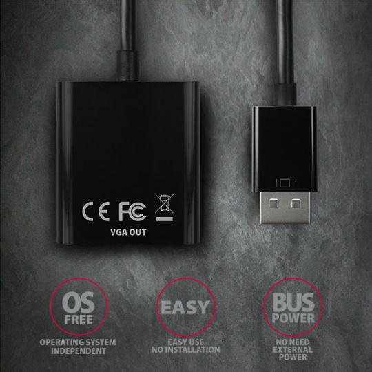 • Jde o čistě hardwarový převodník, převod zajišťuje pouze čip adaptéru bez účasti počítače, žádné ovladače se neinstalují, kompatibilita tedy není závislá na používaném operačním systému.